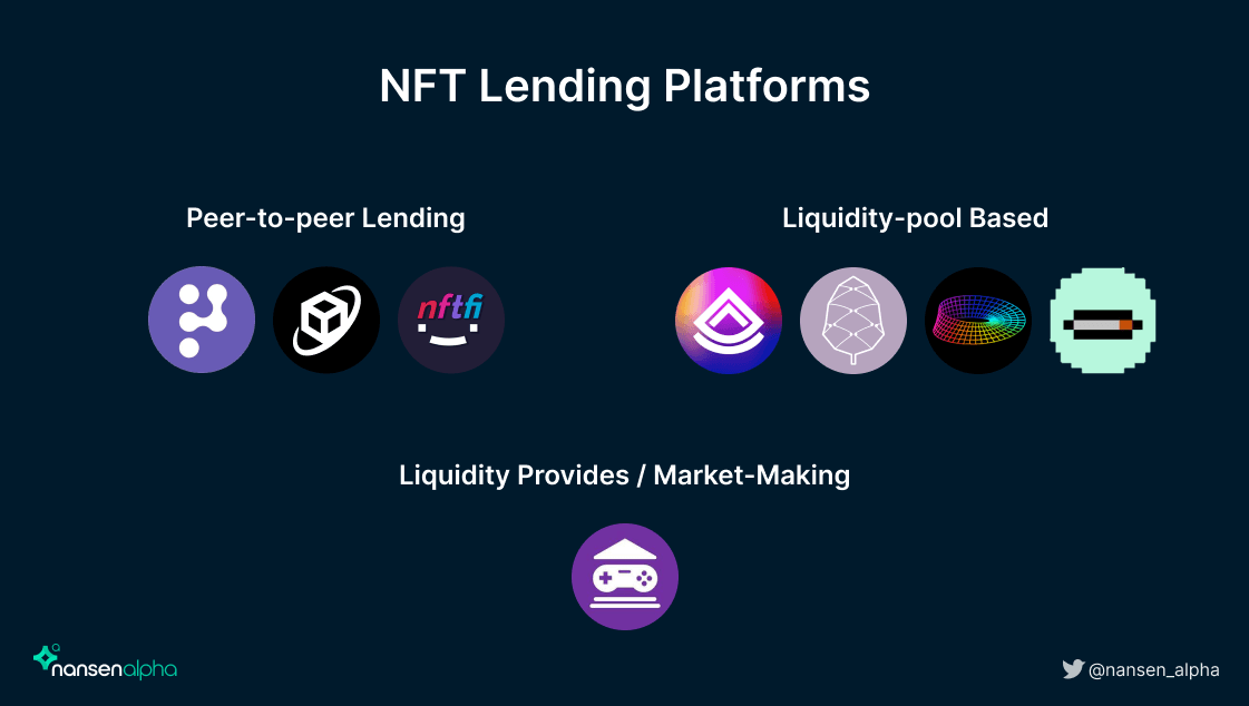 - NFTfi and Arcade are protocols that utilize the peer-to-peer lending model. On the other hand, Pine, BendDAO, JPEG’D, and DropsDAO are notable projects implementing the liquidity-based pool model.