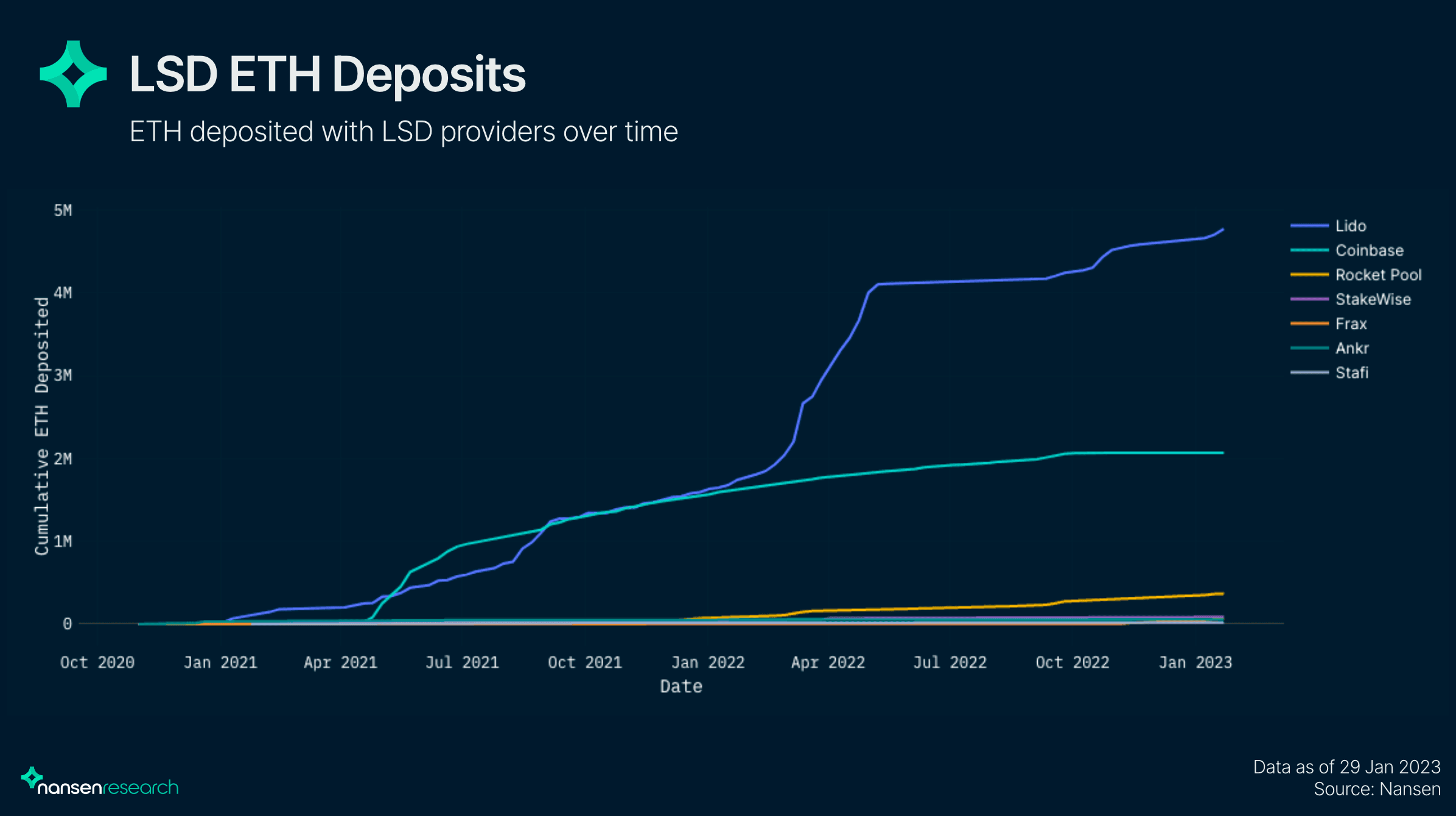 Since Ethereum's successful migration from Proof-of-Work to Proof-of-Stake, the liquid staking derivative (LSD) narrative has consistently been gaining traction. Ethereum bulls have continued to deposit their ETH into the staking contract to earn staking yields, even though withdrawals will only become available after the Shanghai upgrade, which is scheduled for March of 2023.