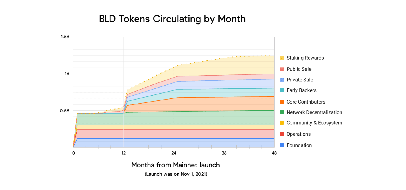 | Public Sale | 7.00% | Option 1: 2.5% token supply at a price of $0.65/BLD with the first unlock on 11/1/21, followed by a 12-month linear unlock. Option 2: 4.5% token supply at a price of $0.8/BLD with first unlock on 6/29/22, followed by a 12-month linear unlock |