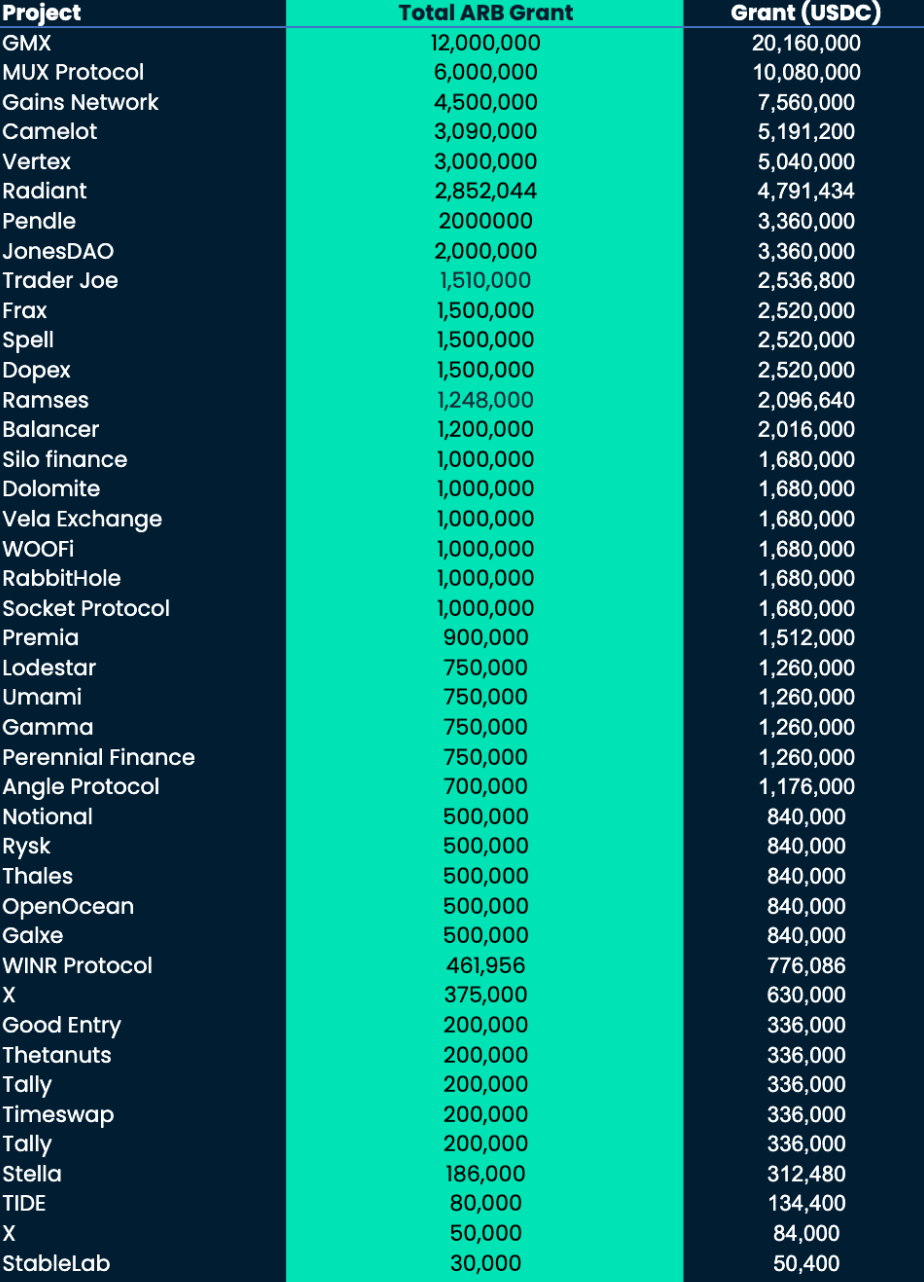 GMX received the largest ARB grant of 12M ARB, representing 20% of the total grant size, followed by MUX Protocol (10M ARB), Gains Network (7.6M ARB), Camelot (5.1M ARB), etc. The grant was first distributed to the protocols on Nov 8, 2023, and each protocol has different distribution timelines. In the case of GMX and the majority of the protocols, the STIP will be fully unlocked by January 26, 2024. For a few protocols like Gains Network, Ramses, Vela, etc. the full unlock date is on March 15, 2024. It is worth looking into protocols that have yet to fully utilize their STIP incentives.