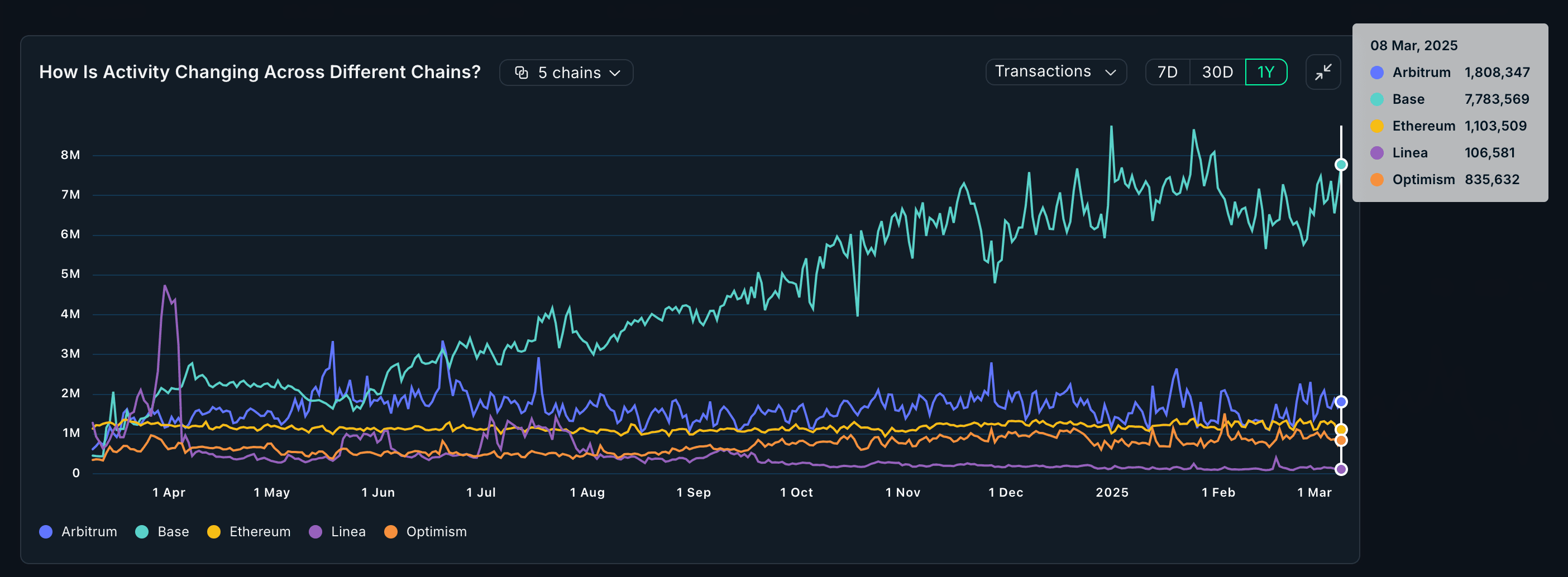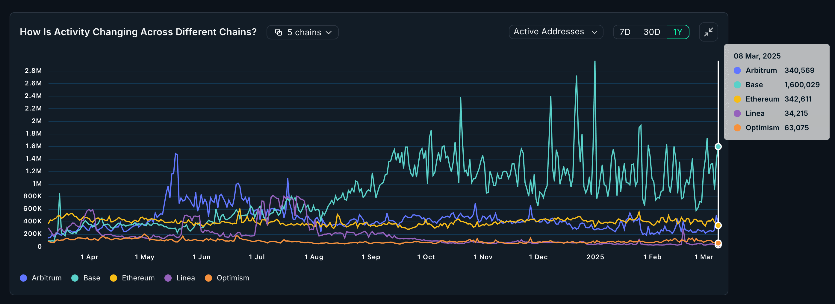 In terms of daily active users, Base is clearly the go-to platform to relative to other L2s.