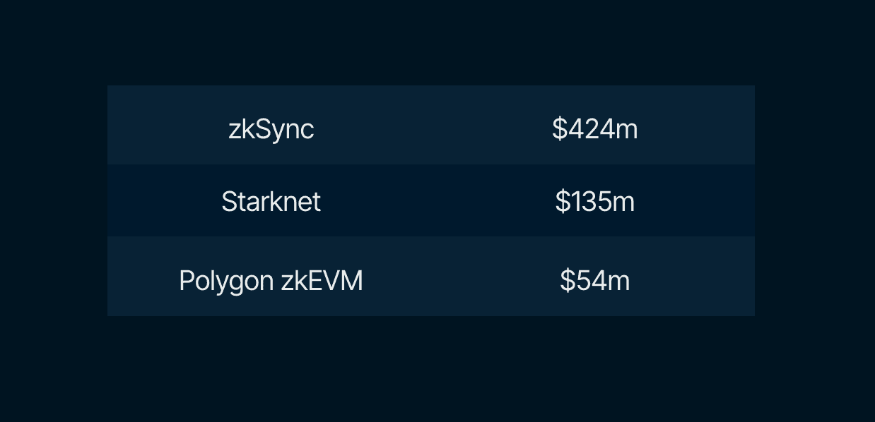 For example, zkSync has ~8.5x the value bridged compared to Polygon zkEVM. This shows a massive disparity in interest, despite Polygon having more battle-tested applications deployed on it.