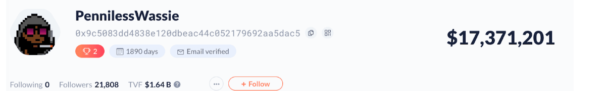 PennilessWassie (0x9c5083dd4838e120dbeac44c052179692aa5dac5)
