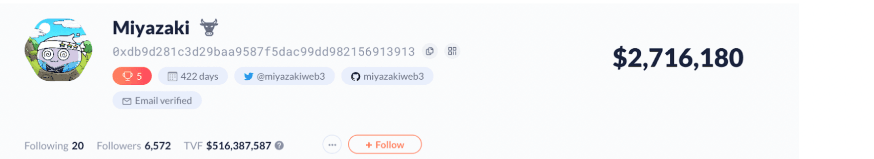 Wallet Size: $47.7mm Debank Followers: 16.4k Smart Money on Nansen? Yes