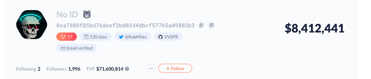- Profile integrity (only counts for DeBank-supported NFT & DeFi protocols)