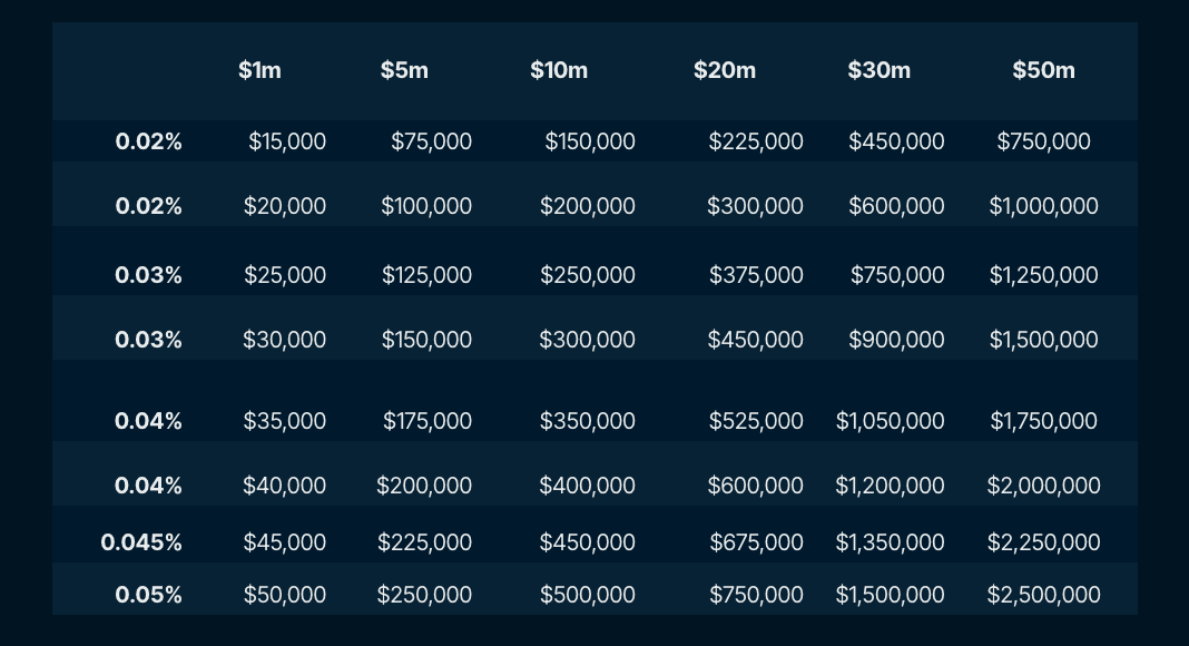 Taking this into account, and the assumption that low fees will win out (and will decrease over time), the weekly initial revenue that can be generated by vdAMM is:
